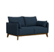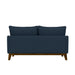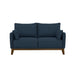 - The Aria loveseat brings mid-century character to the modern age in classic navy and an exposed solid wood frame.