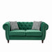 Chesterfield Sofa With Roll Armrest And Nailhead, 2 Seater Couch - Green