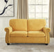 Soft Loveseat, Upholstered 2 Seater Couch, Loose Back Cushions And Turned Legs - Mustard Yellow