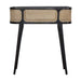 - Larissa Carbon Black Tray Table - This tray table has been beautifully made from 100% solid mango wood in an ash black finish with a hand-woven rattan top. Featuring rounded corners, the table can be used in a variety of settings such as the bedroom, hallway or living room. Perfect for storing flowers, photo frames etc.
