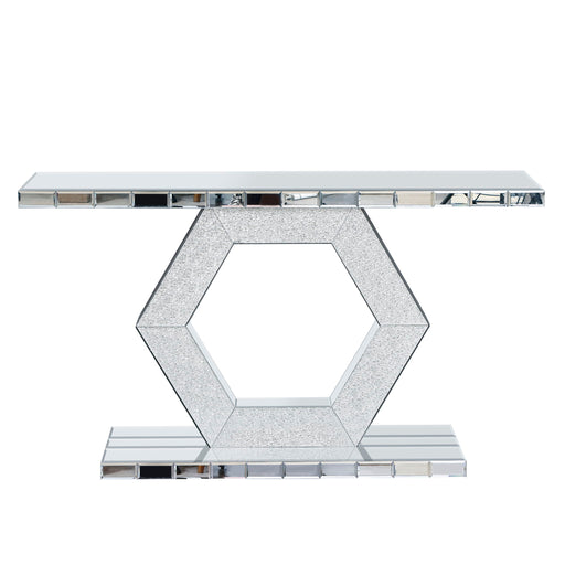 Original price $539.00Original price $539.00 - Original price $539.00Original price $539.00Current price $477.00$477.00 - $477.00Current price $477.00Sparkling Crystal Hexagon Mirror Entryway Premium Modern Foyer Console Table With Diamond Glass Effects, Dual Tier Luxury Sofa Table - Silver