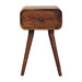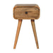 - Nightstand Solid Wood Avora with 1 drawer Artisan Furniture - Combining mid-century elegance with practical design, this bedside table is handcrafted from 100% Solid Mango Wood in a warm finish. Featuring a single drawer with a subtle knob for discreet storage, it rests on tapered Nordic-style legs that add a touch of retro charm. Perfectly sized for smaller spaces, this piece offers functionality and style, making it an ideal addition to bedrooms or living areas. Its handmade, sustainable craftsmanship and natural wood grain ensure that no two pieces are exactly alike, giving your home a unique and timeless accent.