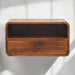 - Curve Upper Slot Floating Bedside - The bigger brother to our original Floating Curve Open Slot Bedside, this minimalistic wall-mounted unit has been constructed from 100% solid mango wood in a finish and features 1 drawer with a shiny knob along with 1 open shelf for storing any bits and pieces you wish to keep close by before bedtime. It's neat and clean design can easily be mounted on the wall without the fuss of any legs. Caution! Do not sit on the unit.