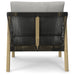 - The fiber filled back cushion and 3.5 inch thick high density foam seat cushion are covered in a water resistant, durable Stone Grey fabric.