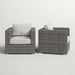 - Stylish Design: This set of two patio chairs features a modern boxy silhouette wrapped in all-weather rattan, complemented by a sleek finish for a contemporary look.