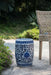 Ceramic Garden Stool, Small Side Tabel - White / Blue