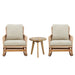 Modern 3 Piece Outdoor Seating Set With Cushioned Rattan Rocking Chairs And Wooden Accent Table