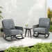 Modern 3 Piece Outdoor Seating Set With Cushioned Rattan Rocking Chairs And Wooden Accent Table For Patio Relaxation - Gray