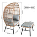 Outdoor Garden Wicker Egg Chair And Footstool Patio Chaise, With Cushions, Outdoor Indoor Basket Chair