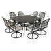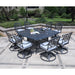 Square 8 Person 64" Long Aluminum Dining Set With Cushions With Swivel And Rocking Chairs - Dark Gray / White