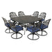 Square 8 Person 64" Long Aluminum Dining Set With Cushions With Swivel And Rocking Chairs - Gray / Navy