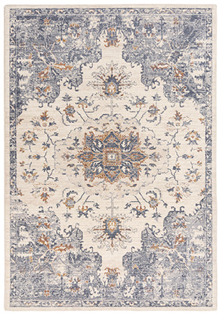 RIZZYVRA751 5X8 Collection : VENTURA Style : Transitional Dominant Color : Ivory/Blue, Beige/Rust Construction : Powerloomed Feature(s) : ...