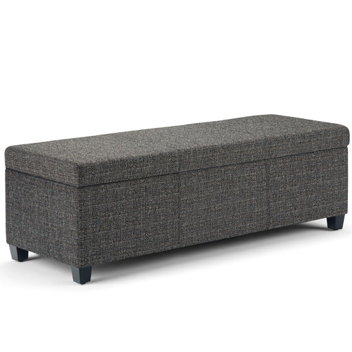 Simpli-HomeHand constructed using solid wood, engineered wood and high density foam Upholstered with a durable Dark Grey Tweed Fabric Features large interior...
