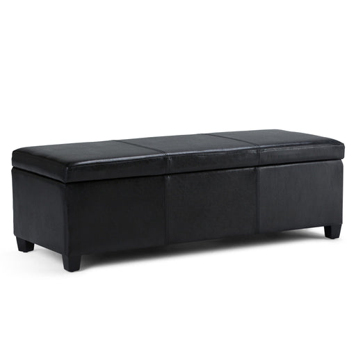 Simpli-HomeHand constructed using solid wood, engineered woods and high density foam Upholstered in a durable Vegan Faux Leather Features large interior stor...