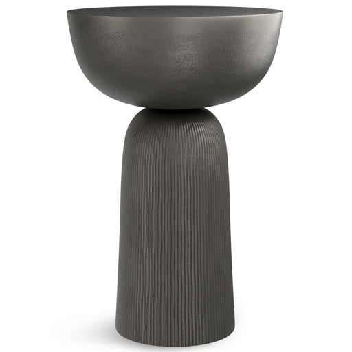Simpli-HomeHandcrafted with care using premium Cast Aluminum. Hand-finished in Black Nickel with a subtle texture on the tabletop and vertical lines on the b...