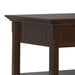 - Transitional style includes tapered legs, grooved detail on sides and fronts, molded crown edged table top