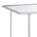- Sleek Stability: Supported by a sleek metal frame with square-straight legs in a polished chrome finish, the table ensures both stability and a contemporary aesthetic appeal.