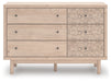 Looking for a dresser that's both playful and practical for your little one? This piece is just the ticket. Its charming design and light wood finish create a whimsical and inviting atmosphere. Drawers accented with a floral pattern add a free-spirited vibe and plenty of storage, so there's no excuse for a messy room.