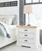 Casual style with substance. This two-tone nightstand raises the bar on comfortably cozy design in your soothing sanctuary. A sturdy silhouette with a classic white finish and black metal hardware exudes modern farmhouse vibes. The butcher block oak veneer top adds a relaxed aesthetic. And bedside charging for your go-to devices is made easy with power outlets and USB ports.