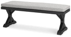 Sporting an easy-on-the-eyes elegance, this bench with cushion elevates the art of alfresco living. Beautiful and durable enough for indoor and outdoor use, this casually cool seating entices with X-leg farmhouse styling and a plush, removable cushion wrapped in high-performing Nuvella® fabric that’s a breeze to keep clean.