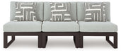 | Details | Includes 3 modular armless chairs, Made with aluminum and resin wicker, Black finish, All-weather foam cushion core wrapped in soft polyester, Zippered cushions and throw pillows covered in solution-dyed high-performance fabric, Nuvella+™ is an outdoor fabric that can be cleaned and offers enhanced UV resistance, Clean fabric with mild soap and water, let air dry; for stubborn stains, use a solution of 4 oz. bleach to 28 oz. water, Stainless steel hardware, Designed to withstand the harsh elements of the outdoors, 3 throw pillows included, Assembly required | |