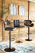 Style takes quite a modern turn. Sporting a distinctively contoured back and seat design, this upholstered swivel bar stool is sure to bring an elevated look to your living space. Wrapped in a brown faux leather upholstery, the seating area’s artful contours are accentuated with a faux wood finish.
