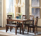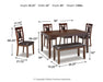 | Details | Includes table, 4 upholstered chairs and upholstered bench, Table made of veneers, wood and engineered wood, Wood frame chairs and bench, Cushioned backs and seats with faux leather upholstery, Seats 6, Assembly required | |