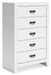 | Details | Made with hardwood solids, okoume veneer and MDF substrates, White finish, 5 drawers with dovetail construction and metal center guides, Hardware with dark finish, Drawer interiors are lined with a wood grain laminate for a clean, finished look | |