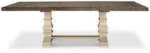 | Details | Made with wood, veneer and engineered wood, Tabletop with textural weathered oak finish , Base with textured antiqued white finish , Removable center leaf, Table extends to 103" by pulling both ends and dropping in leaf, Seats up to 10 with removable leaf in place, Dining chairs sold separately, Assembly required | |