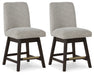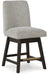 Dressed to thrill, this counter height bar stool offers a high-design look at a down-to-earth price. Ultra-sleek lines are accentuated with a dark waxy brown oak-tone finish that’s so easy on the eyes. Suitably upholstered in a tweed-like neutral fabric, the softly contoured back design is tailor-made for comfort. Whether it's part of a dining arrangement or used as extra seating, this timeless bar stool has a look that’s made to last.