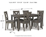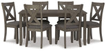 | Details | Includes dining table and 6 chairs, Table made of wood, acacia veneer and engineered wood; chairs made of wood, Antiqued gray wash finish, Foam cushioned seat with linen-weave polyester upholstery, Nailhead accents, Seats 6, Assembly required | |