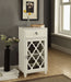 - Versatile Design: The Ceara White Finish Accent Table features a compact design with one drawer and a glass door, making it a stylish and functional addition to any space.