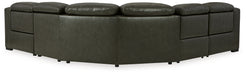 | Details | Includes 5 pieces: left-arm facing power recliner, armless chair, power armless recliner, wedge and right-arm facing power recliner, "Left-arm" and "right-arm" describe the position of the arm when you face the piece, One-touch power control with adjustable positions, Easy View™ adjustable headrest and zero-draw USB port, Zero-draw technology only consumes power when the USB receptacle is in use, Corner-blocked frame with metal reinforced seat, Attached cushions, High-quality foam cushions wrapped in poly fiber, 100% top grain leather covers inside areas such as the back, seat and arm cushions; skillfully matched faux leather covers the remaining areas, Due to its natural origin, real leather can show individual characteristics such as healed scars, growth marks, grain variation and shade variation, Natural variations make each hide unique and do not detract from the wearing qualities of leather, Zero wall recliner design requires minimal space between wall and chair back, Power cord included; UL Listed | |