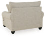 This oversized chair and ottoman package has an alluring look that's guaranteed to turn heads. Richly textured fabric in a light, easygoing hue is enhanced by even lighter flax peeking through. The chair's distinctive roll arms add a dab of debonair, while indulgently plush cushions cradle you softly. Sit back and relax in comfort and style, with plenty of room to stretch out and unwind at the end of a long day.