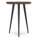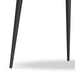 - Features round tray-style top with rim and black metal legs