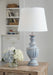 | Details | Made of terra cotta and wood with empire hardback fabric shade, Antiqued blue finish, 3-way switch, 1 E26 socket, type A bulb (not included); 150 watts max or LED equivalent; UL Listed, Due to the finishing process, some variations may occur, Assembly required | |