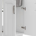 - Cabinet is constructed with melamine and doors are wrapped with PVC, materials that are highly durable, low maintenance, and water resistant
