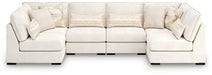 Details Includes 6 modular pieces: 4 armless chairs and 2 left-arm facing/right-arm facing corner chairs, "Left-arm" and "right-arm" describe the position of the arm when you face the piece, Modular pieces can float anywhere; sides are finished (with no connectors), Corner-blocked frame, Reversible seat and back cushions; high-resiliency foam cushions wrapped in poly fiber, Includes accent pillows with soft polyfill, Polyester upholstery, Next-Gen Nuvella™ is a performance fabric that is soft, easy to clean, stain-resistant and durable, Easy-to-remove zippered covers for machine washing, Clean fabric with mild soap and water, let air dry; for stubborn stains, use a solution of 4 oz. bleach to 28 oz. water, Low-profile accent legs with faux wood finish, Platform foundation system resists sagging 3x better than spring system after 20,000 testing cycles by providing more even support, Smooth platform foundation maintains tight, wrinkle-free look without dips or sags that can occur over time with sinuous spring foundations