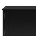 - Features one adjustable shelf in the middle with cable management and two (2) side cabinets with adjustable shelves & recessed door pulls in a bronze hardware finish