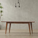 - Supporting the tabletop are robust, solid rubberwood legs that are angled and tapered with a rounded-square shape, and an inset table apron that adds a refined touch.