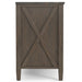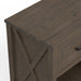- Transitional design includes shaker style drawer front, bronze drawer pull, and X detail on side panel