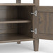 - Features 3 shaker style doors with X detail that open to large internal storage area with shelves
