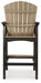 Raise the bar on outdoor living with this bar stool set. Crafted for style and durability, it caters with sturdy armrests, an ample footrest, a high shell back and a waterfall wrapped seat for curvaceous comfort. Adding to its appeal: a standout two-tone look that pairs driftwood and black finishes for twice the interest, and a slatted design to easily shed rainwater.