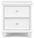 Exuding a timeless casual design, this nightstand is ready to define your personal space. It easily adapts to a variety of interiors, combining a clean, contemporary white finish with framed drawer fronts and round metal knobs. Featuring two storage drawers with dovetail construction and traditional tapered feet, this piece is sure to bring elegant simplicity to your bedroom.