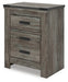 Cool, casual style is for all ages. With this nightstand, they get the function they need paired with the refined design you love. Approachably neutral in a rustic warm gray, it’s adaptable enough to pair with an assortment of existing colors and room decor. Faux metal detailing with nailhead accents lends an industrial edge. And a smooth-gliding drawer and open cubby offer storage for favorite books and other bedtime necessities. Techy toys running low on power? The handy included USB ports allow you to charge devices with ease.