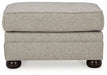 Inspired by the past but rooted firmly in the present, this ottoman complements your transitional seating area. Its versatile upholstery is delightfully detailed for a subtle herringbone effect. Designer touches like bun legs add traditional character. With this ottoman's reliable style and comfort, all you need to do is kick back and relax.
