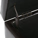 - Features large interior storage space with child safety hinge to prevent lid slamming