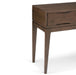 - Contemporary twist on a mid-century design includes solid wood tapered legs