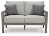 This loveseat is a stylish outdoor piece with staying power. Built for longevity with Weatherwood, an engineered resin polymer with the appearance of wood, it indulges you in contemporary design without sacrificing durability. Stunning form and can’t-miss function—with this loveseat, endless days in the shade await.