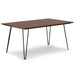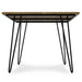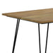 - Table base is made of powder-coated iron metal with trendy hairpin-style legs that bring an open, airy feel to a dining space.